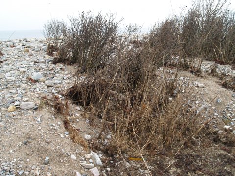 Nogle steder er rynket rose blevet begravet i op til 1 m tykke lag af sten.
